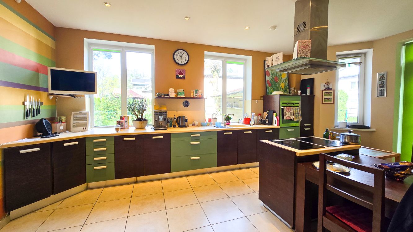 Plaša dzīvojamā istaba, moderna virtuve un ēdamzona